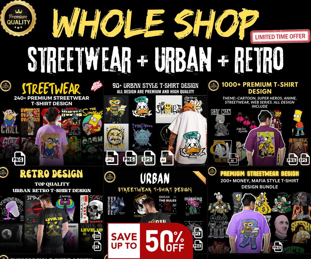 Whole Shop Streetwear | Urban | Retro All Design Are Available In This Pack, Biggest Streetwear Bundle On Etsy- STYLETECHY